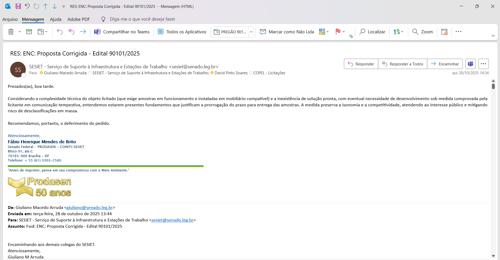 | Aquisição e instalação de equipamentos do tipo desktop com monitor e mecanismo de elevação novos, com garantia de funcionamento por 60 (sessenta) meses, incluindo as obrigações acessórias de implantação, para instalação no Plenário 15 do Edifício Anexo 2 – Bloco C, Ala Alexandre Costa - Comissão de Educação. |